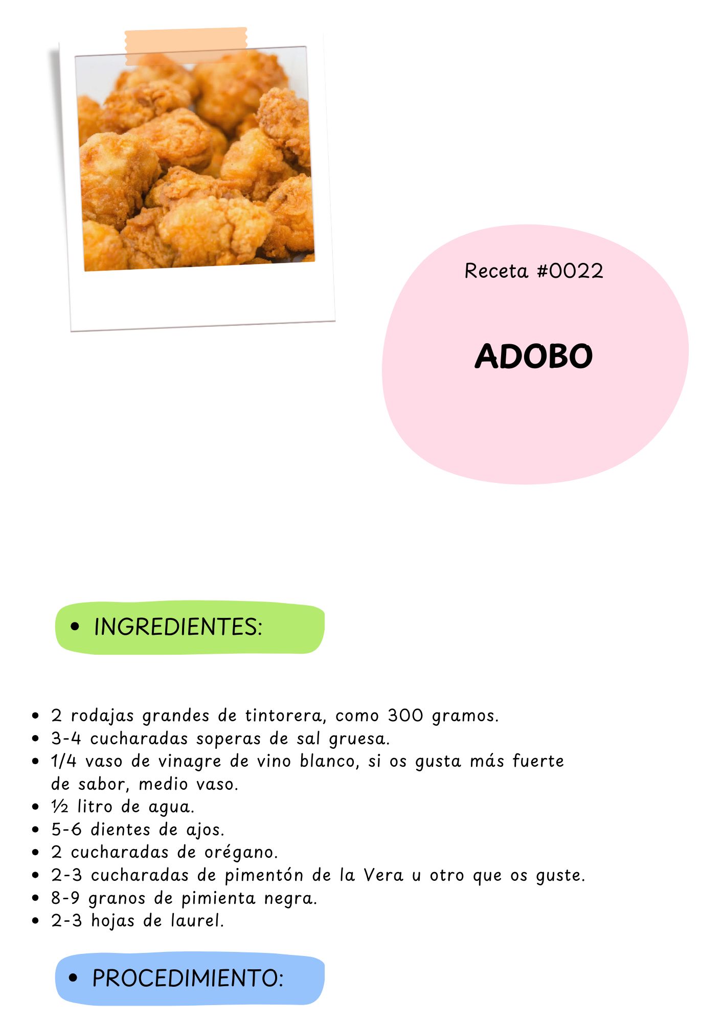 el cazón, tintorera o pescado de nuestro gusto, que previamente lo cortaremos del tamaño mediano-pequeño.